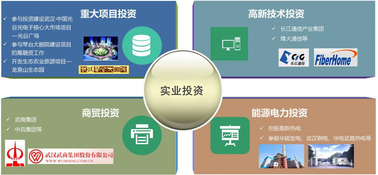 参与投资建设武汉·中国光谷光电子核心大市场项目—光谷广场、参与琴台大剧院建设项目的筹融资工作、开发建设生态农业旅游项目—龙泉山生态园。