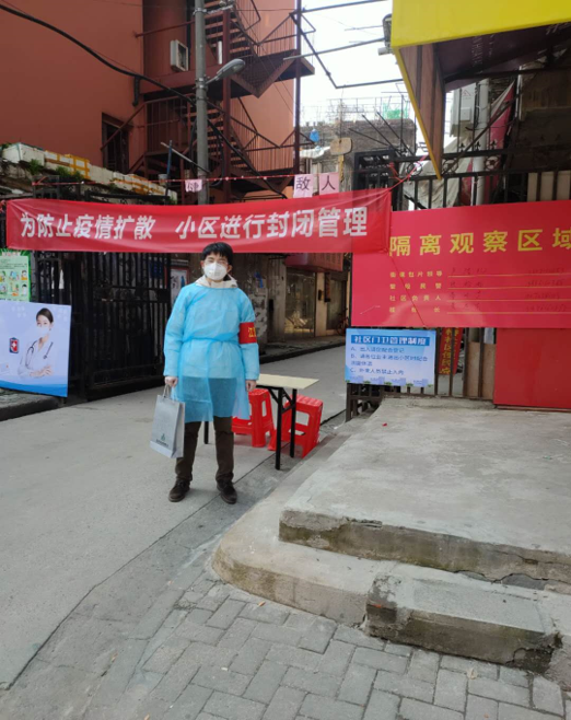 作为开投信用公司百人防疫突击队的首批队员,余屹被分在第三突击队,参与支援疫情重灾区唐家墩街道下辖的西桥社区。该社区以老旧小区及城中村为主,社区居民情况复杂、普遍年龄偏大、防疫意识薄弱。面对这一情况,余屹与队友们坚守在小区的出入口,一方面逐一对出入人员测体温、做登记,一方面劝阻提醒居民尽量不要在外逗留,耐心地进行防疫知识的宣传讲解。虽然出入口值守工作单调、枯燥,但正如习近平总书记指出的,“疫情大考,重在基层,难在基层”,而社区是疫情联防联控的第一线,是外防输入、内防扩散的最重要防线。为了把自己的岗位变成疫情防控的坚强堡垒,余屹往往一站就是几个小时,有时都顾不上喝口水。