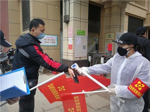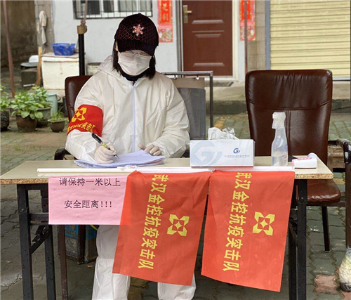 作为公司一名中层干部,袁桂霞闻令而动。她值守的社区是与华南海鲜市场临近的唐蔡社区,该小区左边是红十字会医院,右边是“120”,有人问她,这么危险的地方,你怕不怕?她回答:“我是党员,义不容辞!”2月15日那场风雪,在雨棚垮后毫无遮挡的情况下,她依然坚守,拿着测温枪的手已冻僵,双脚已湿透,10个小时,她就守护在那里,守护着小区的平安。