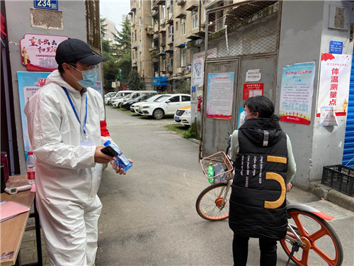 3月11日下午,突击队员孙少岩在值守点德望社区纺织小区,帮助小区居民陈女士将刚从医院回来的丈夫送回家中,他这种不顾个人安危、热心服务群众的行为得到了集团领导高度肯定。